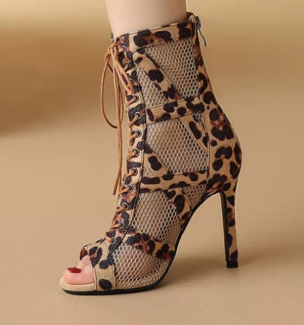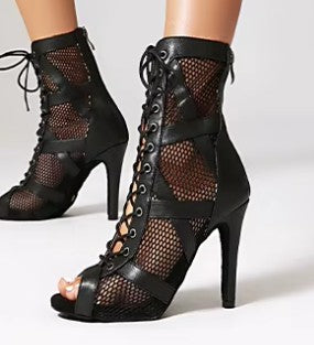 Salsa Dance Boots With High Top and Laces. Features a Slim Heel and Peep Toe Design BSC2009