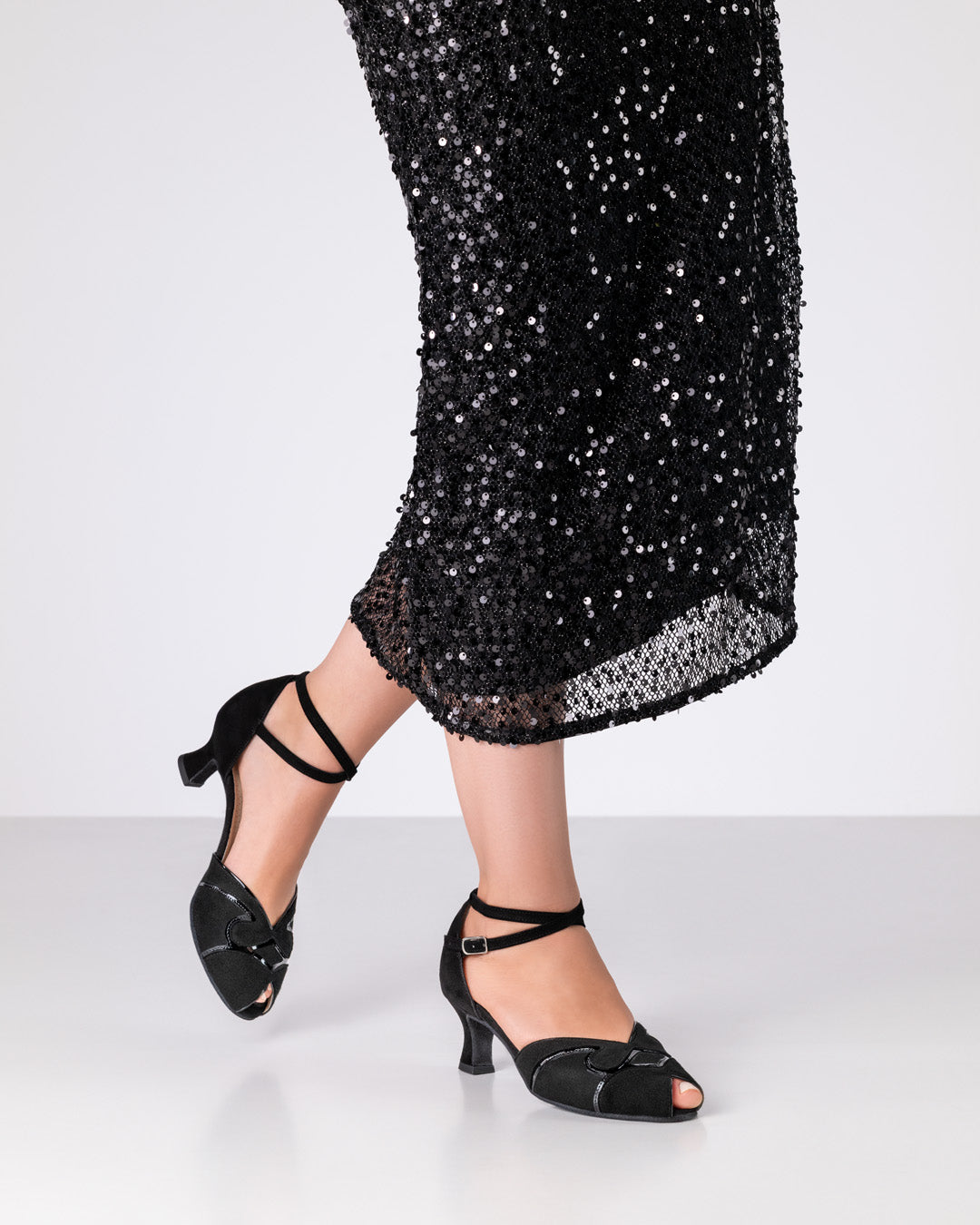 Nellie dance shoe by Werner Kern – subtle glamour with finesse. Black suede meets shimmering, underlaid patent leather – adding expressiveness to every step. Thanks to the wider fit and comfortable arch support, this dance shoe remains pleasant to wear even during long use. The peep-toe adds a light and modern touch. The elegant cross strap ensures optimal comfort and secure support. That way, your mind is free to focus on what really matters – dancing!