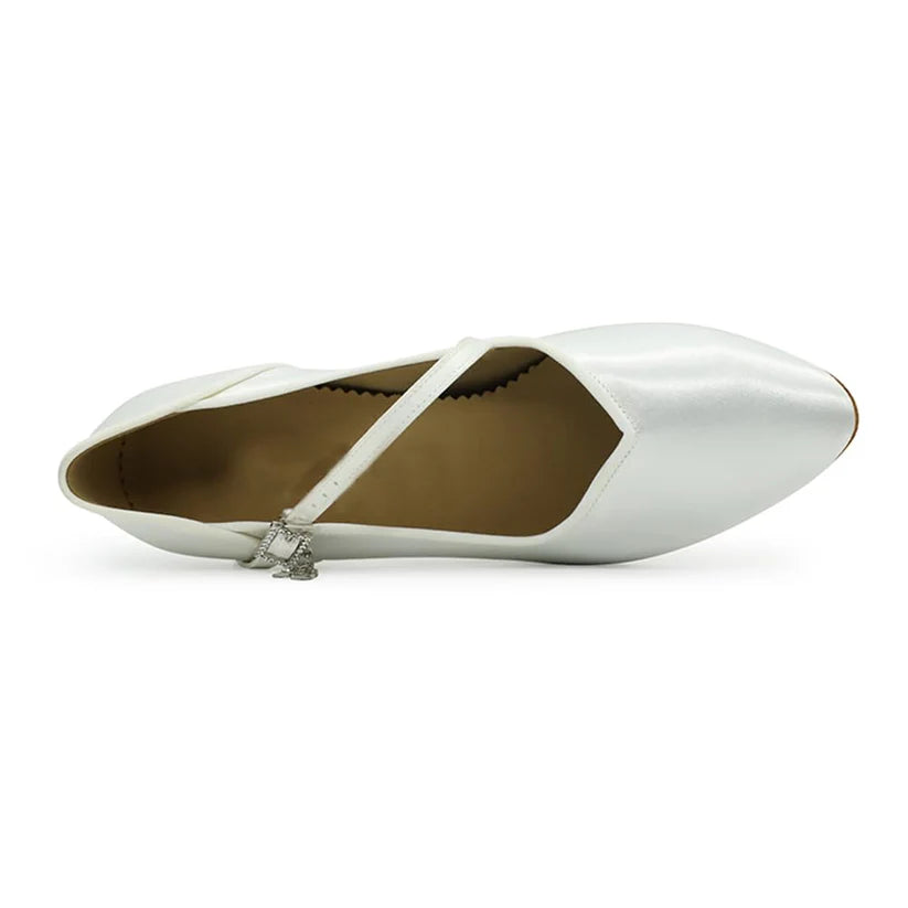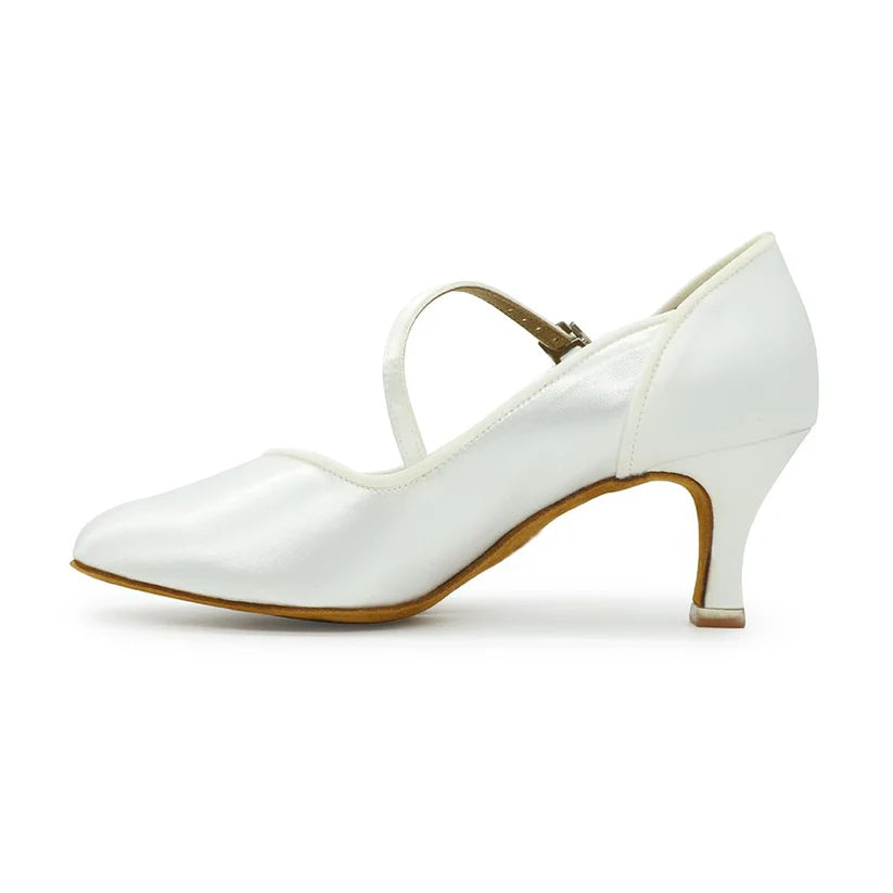 - VERSATILE DESIGN: Mary Jane style dance shoes featuring elegant white satin construction and secure strap closure for perfect fit during performances