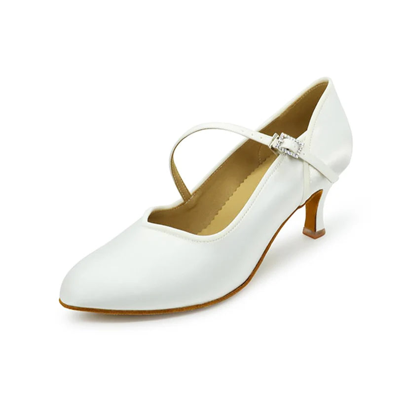 BD Dance Women's Ballroom Latin Dance Shoes Elegant Dancing Wedding Shoes Mary Jane Style Kitten Heel White Satin
