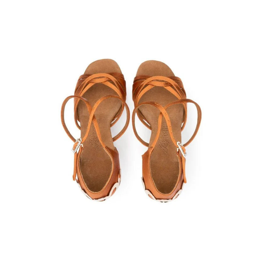 - PROFESSIONAL DESIGN: Latin dance shoes crafted specifically for ballroom dancing, featuring elegant tan coloring and secure cross-strapping design