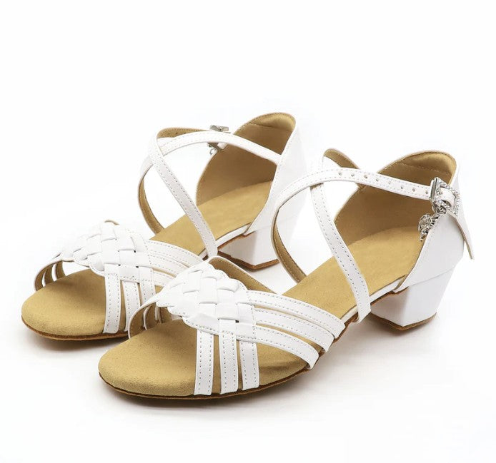 BDDANCE DESIGN: Elegant strappy sandals specifically crafted for Latin and ballroom dancing, featuring a secure ankle strap with decorative buckle closure