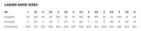 | US | 3 | 3.5 | 4 | 4.5 | 5 | 5.5 | 6 | 6.5 | 7 | 7.5 | 8 | 8.5 | 9 | 9.5 | 10 |