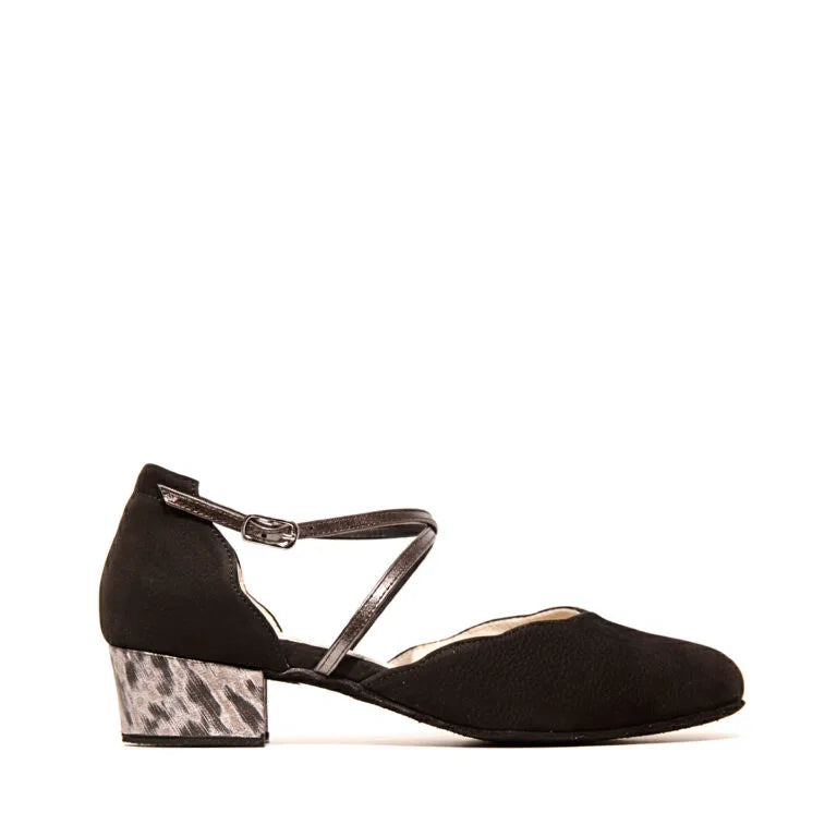 Suede Charleston characterized by crossed straps adjustable with the T-bar, to offer maximum stability in movements. Particularly used in social dance. Leather lining.