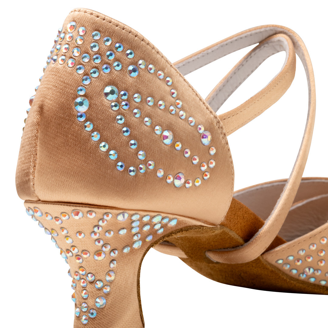Delicate nude satin embellished with rhinestones, gently and smoothly conforming to the foot -
