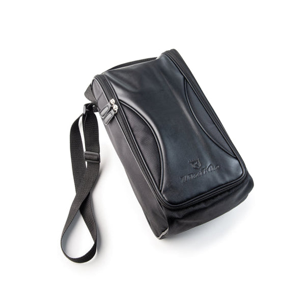 Practical shoe carrier bag made of durable material with a zipper all around. You can hang it comfortably over your shoulder or hold it in your hand. Length approx. 40 cm, width 18 cm and height approx. 12 cm and thus offers space for shoes up to size 46.